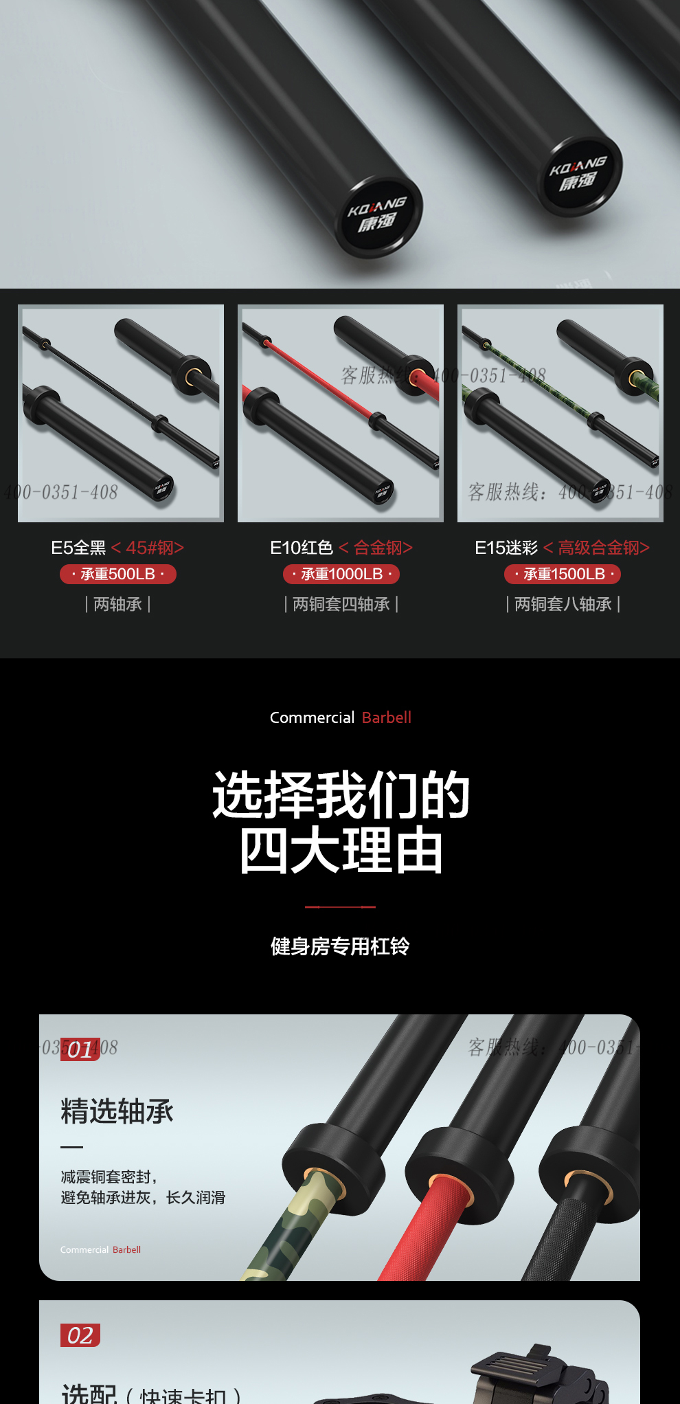 leyu.乐鱼杠铃杆硬铬陶瓷镀黑彩色男士女士举重训练杆八轴承2.2M奥杆 E10激情红承重1000LB