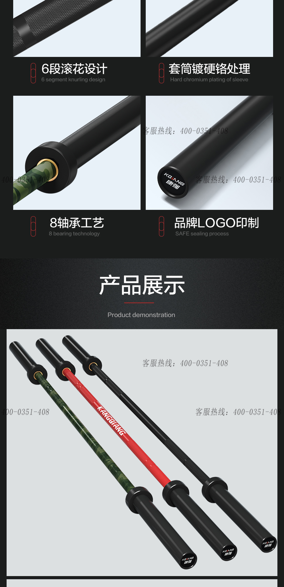 leyu.乐鱼杠铃杆硬铬陶瓷镀黑彩色男士女士举重训练杆八轴承2.2M奥杆 E15迷彩绿承重1500LB
