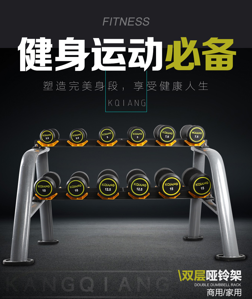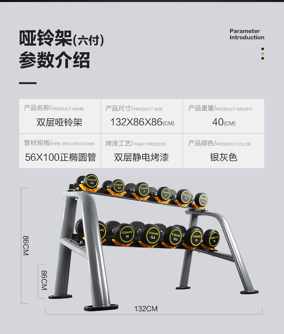 leyu.乐鱼商用包胶哑铃男士健身器材健身房包胶固定式哑铃 双层6付哑铃组(含哑铃、哑铃架)