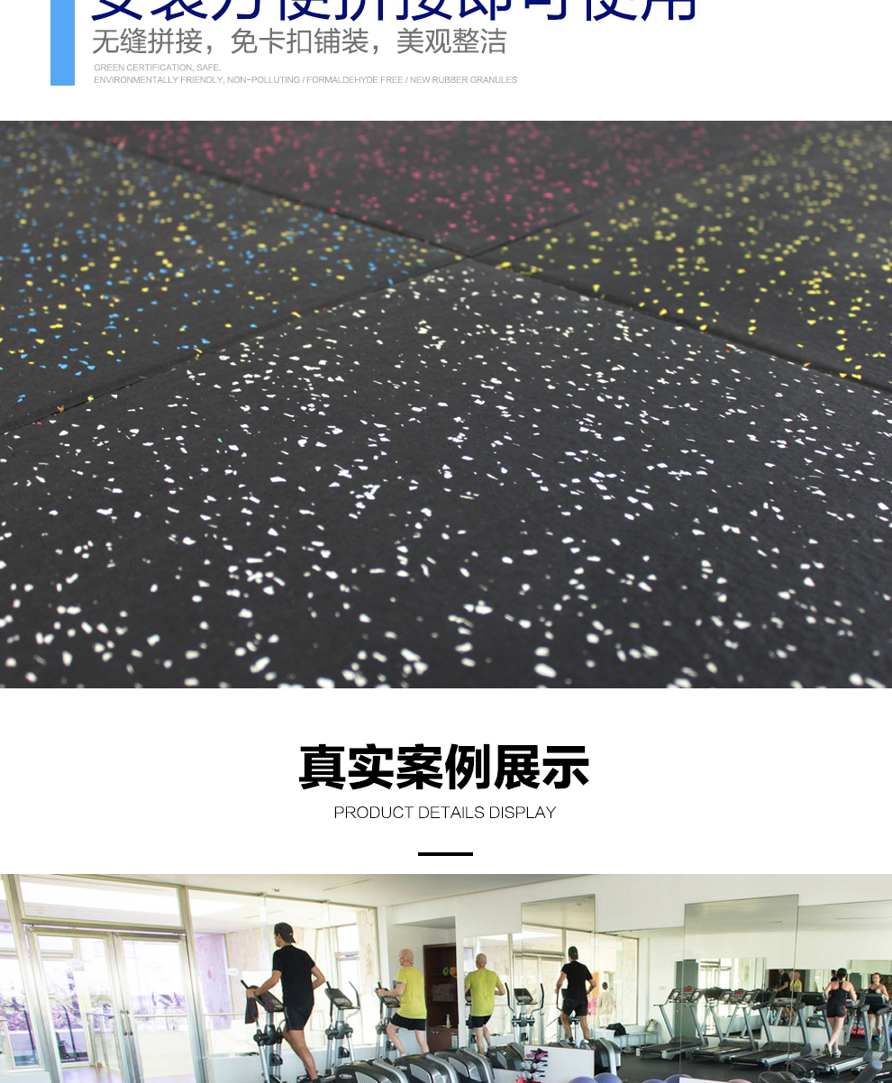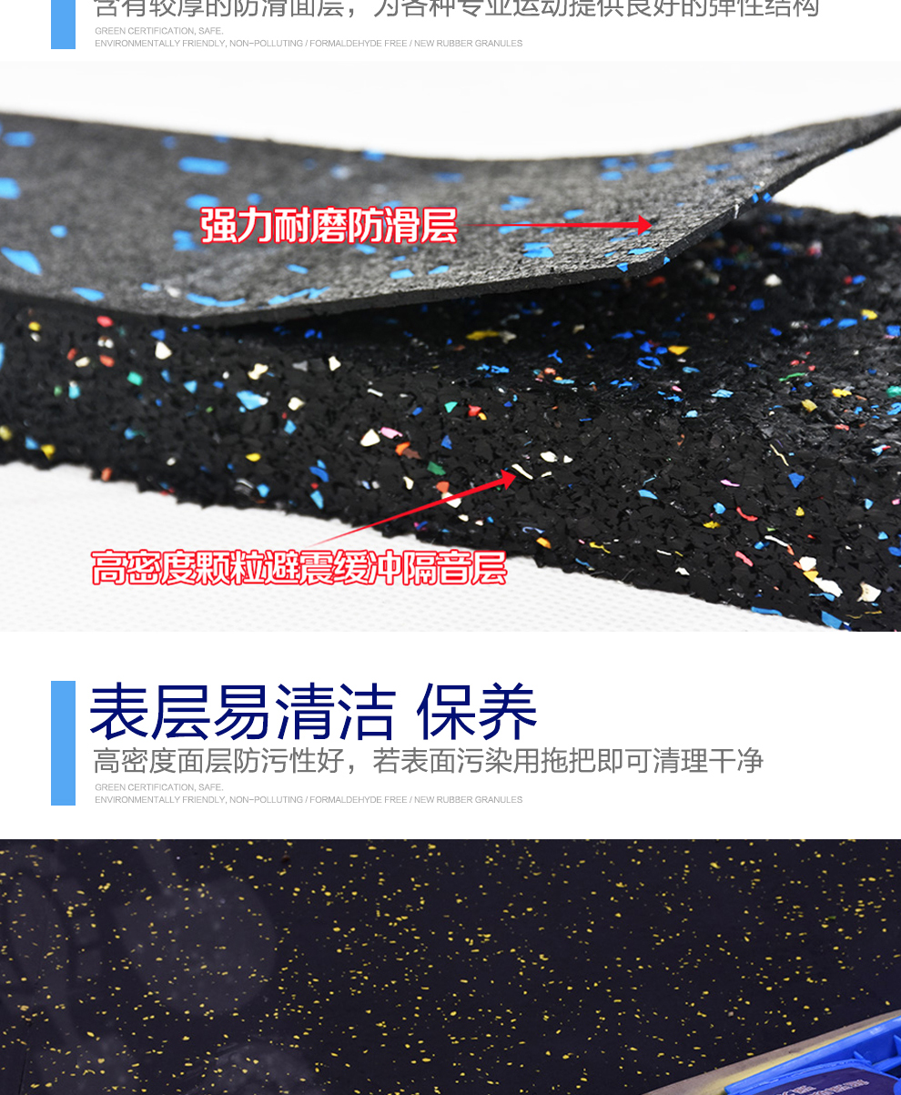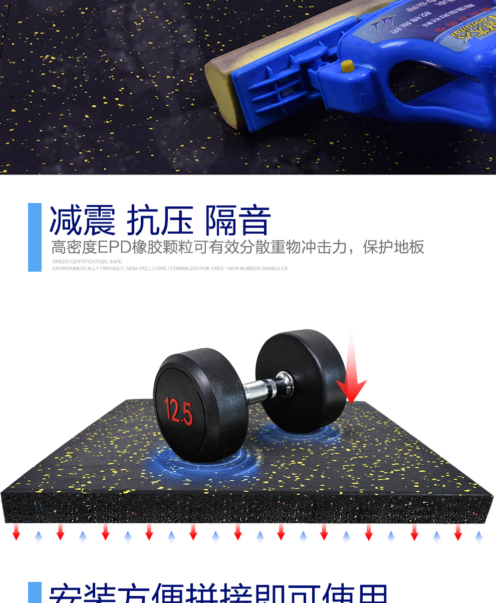 leyu.乐鱼复合环保材质橡胶地垫运动地垫室内缓冲地板健身器材力量区专用拼接垫子(12块起拍)