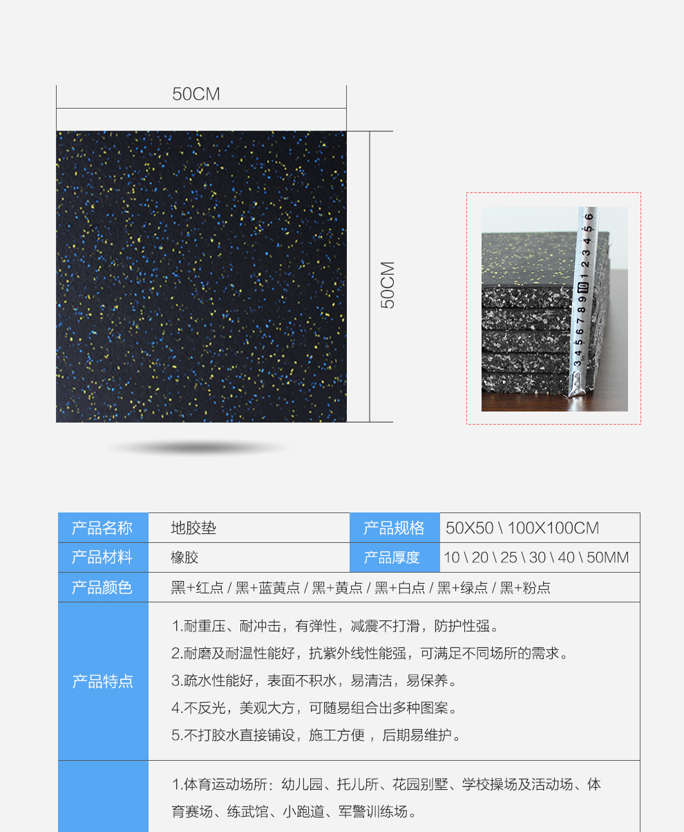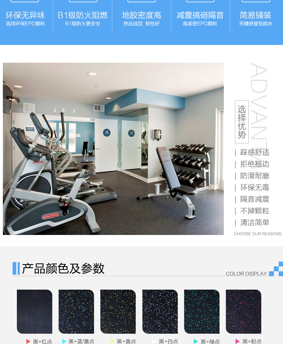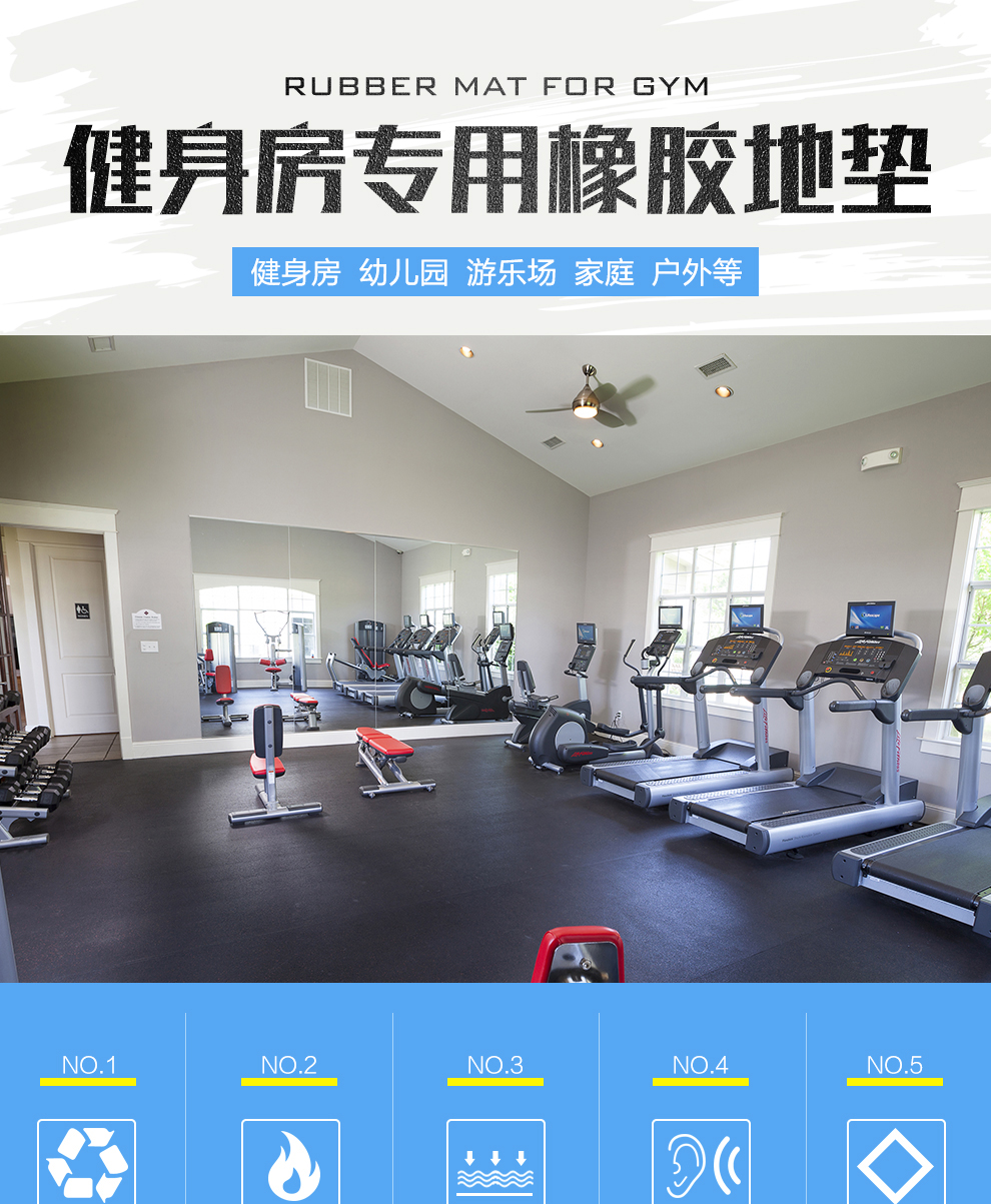 leyu.乐鱼复合环保材质橡胶地垫运动地垫室内缓冲地板健身器材力量区专用拼接垫子(12块起拍)