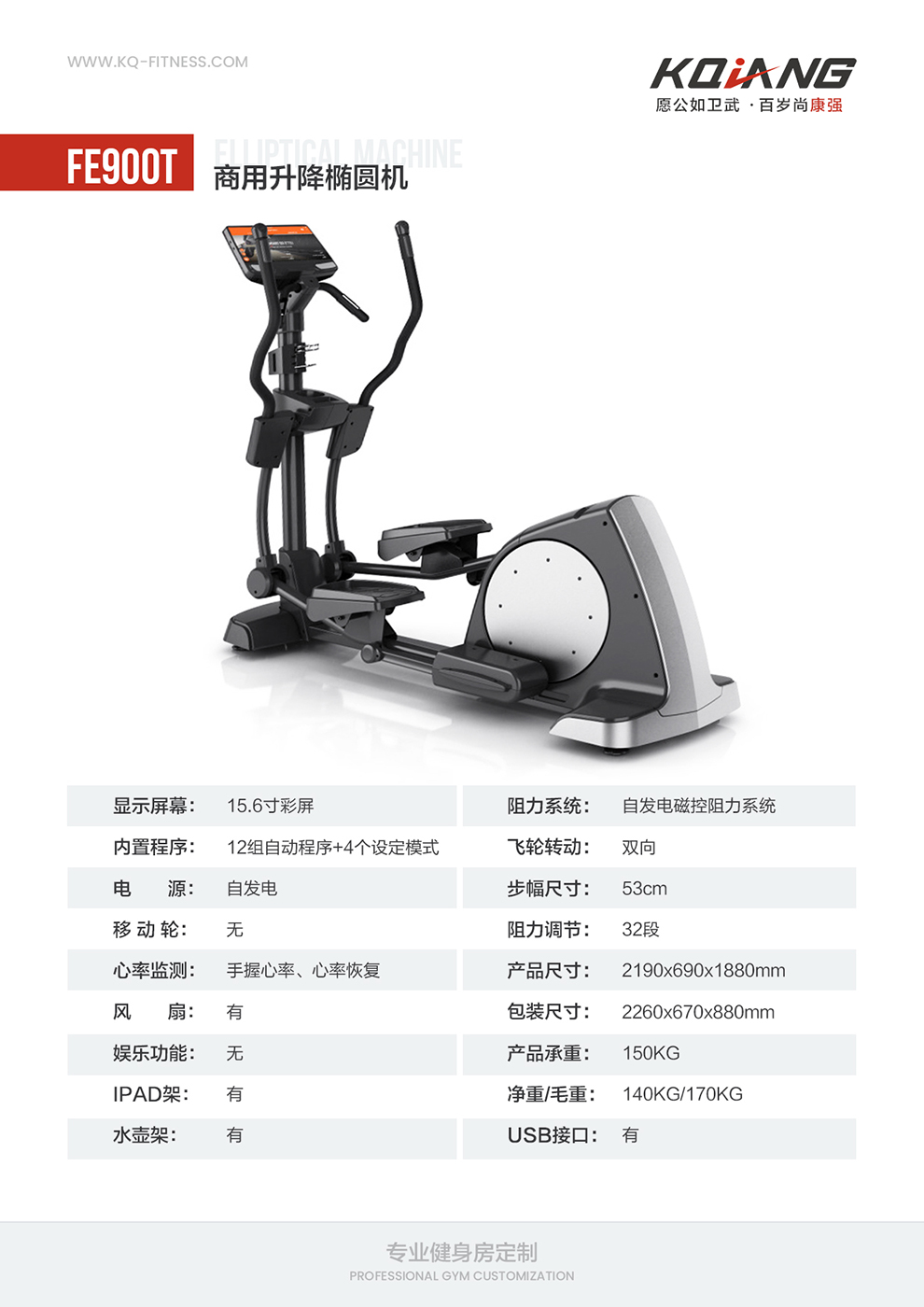 leyu.乐鱼商用椭圆机FE900T彩屏款家用商用专业室内有氧健身器材