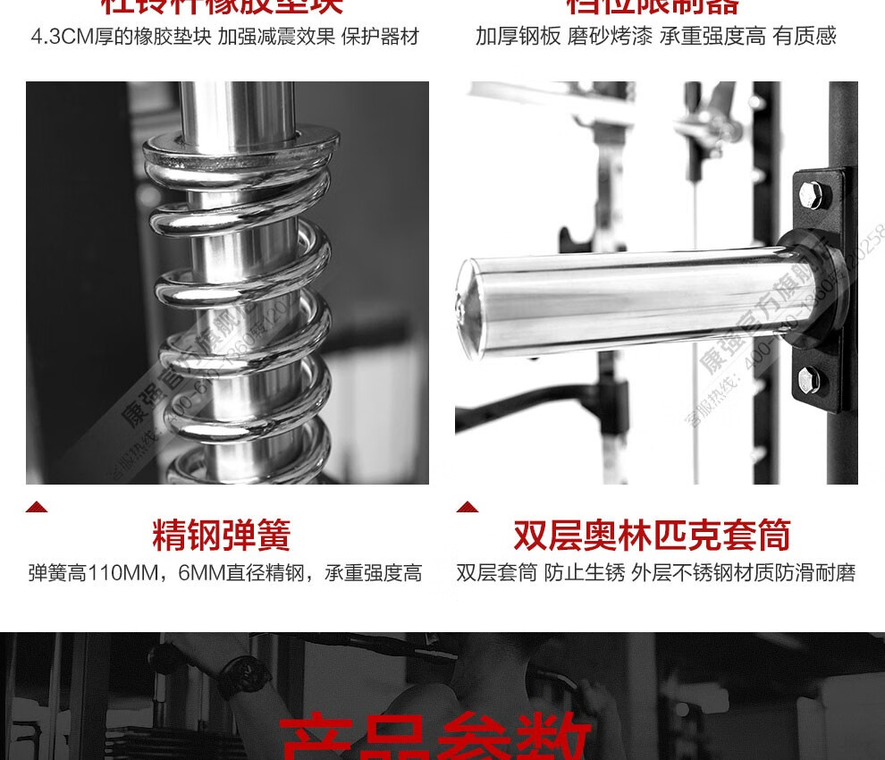 烤漆 | 双层静电吸附两次高温烘烤 | 传动系统 | 专业钢绳索 |