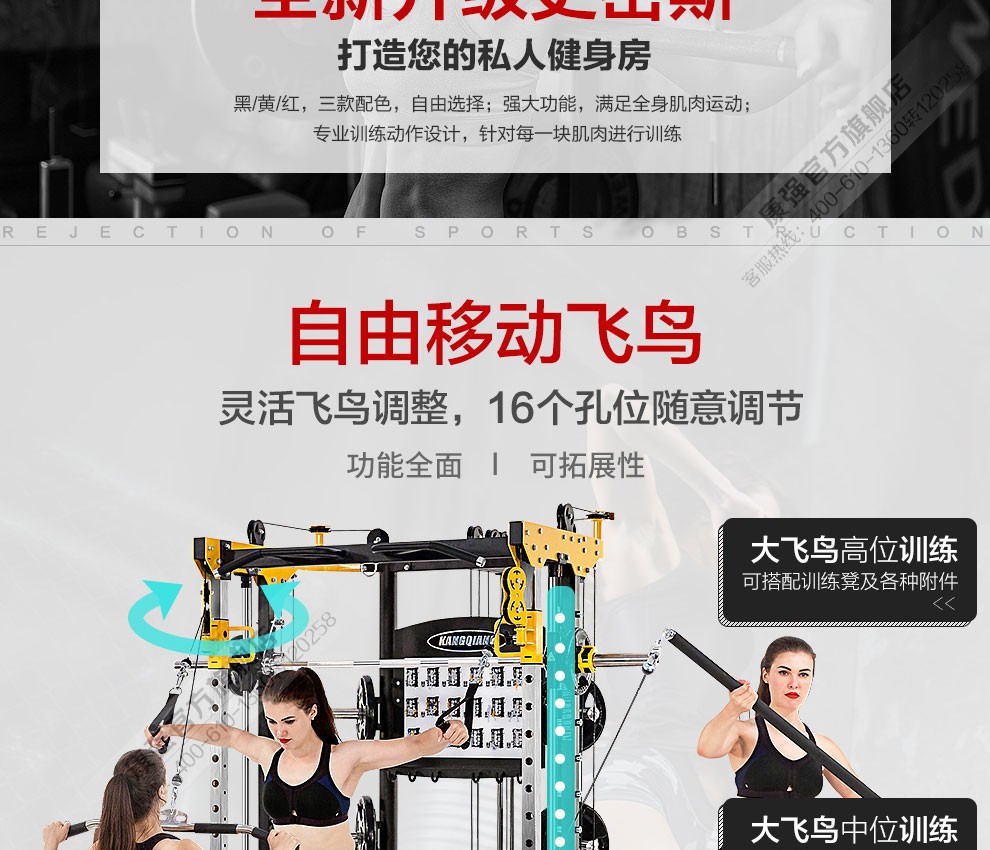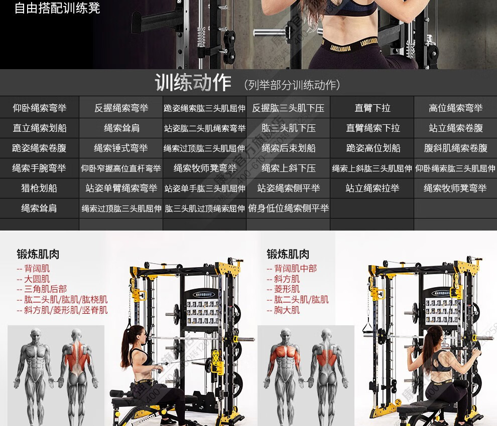 leyu.乐鱼BK507史密斯机移动飞鸟综合训练器健身器材龙门架举重床深蹲卧推杠铃架 BK507升级配置