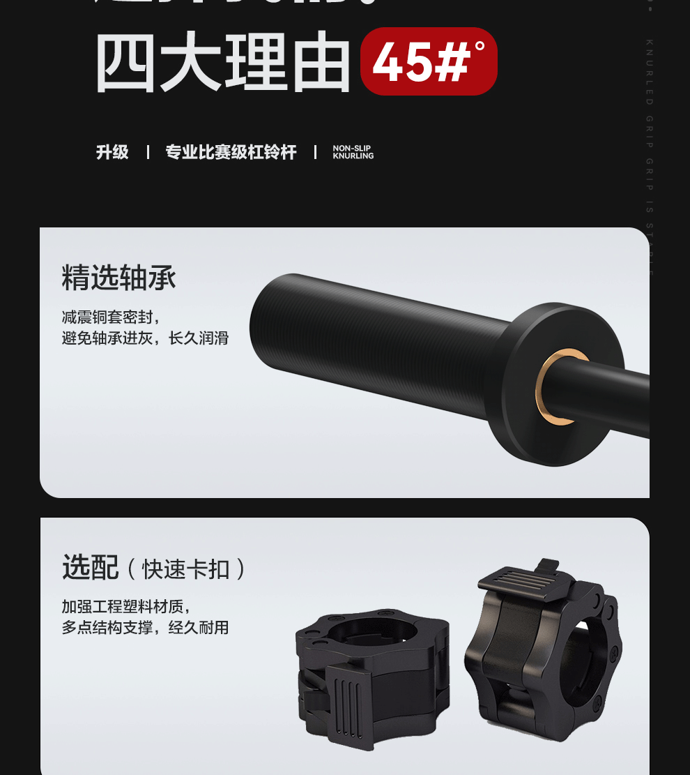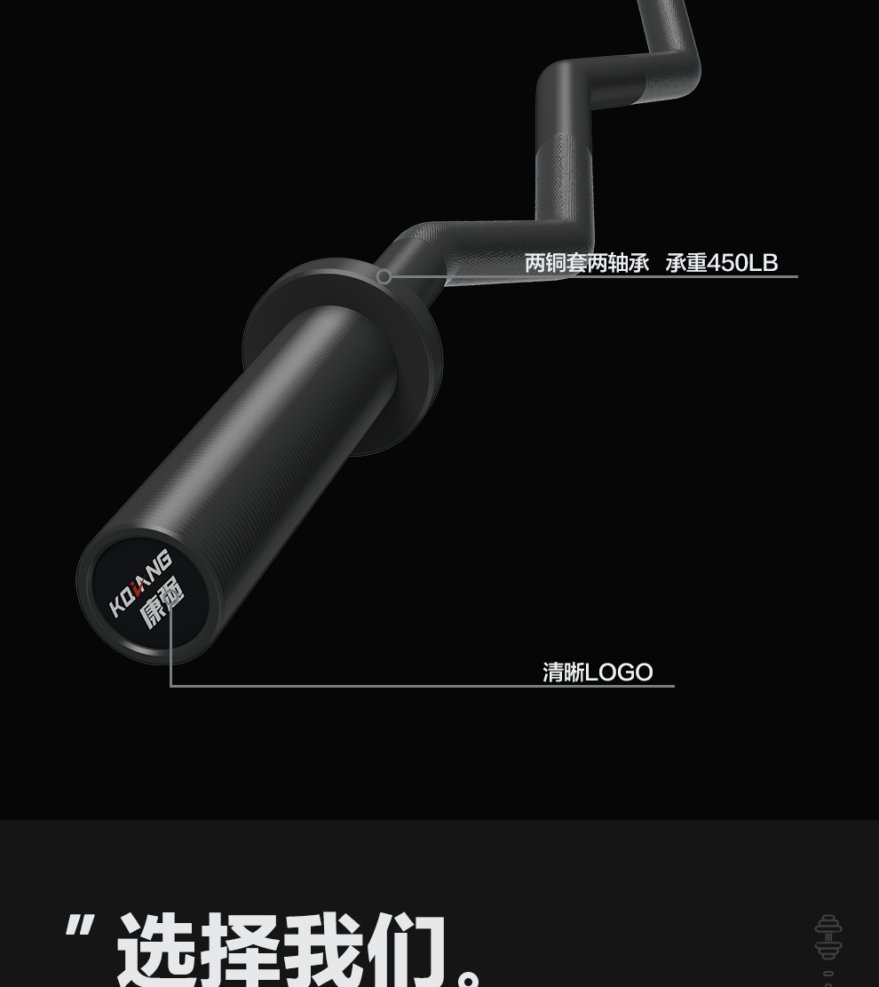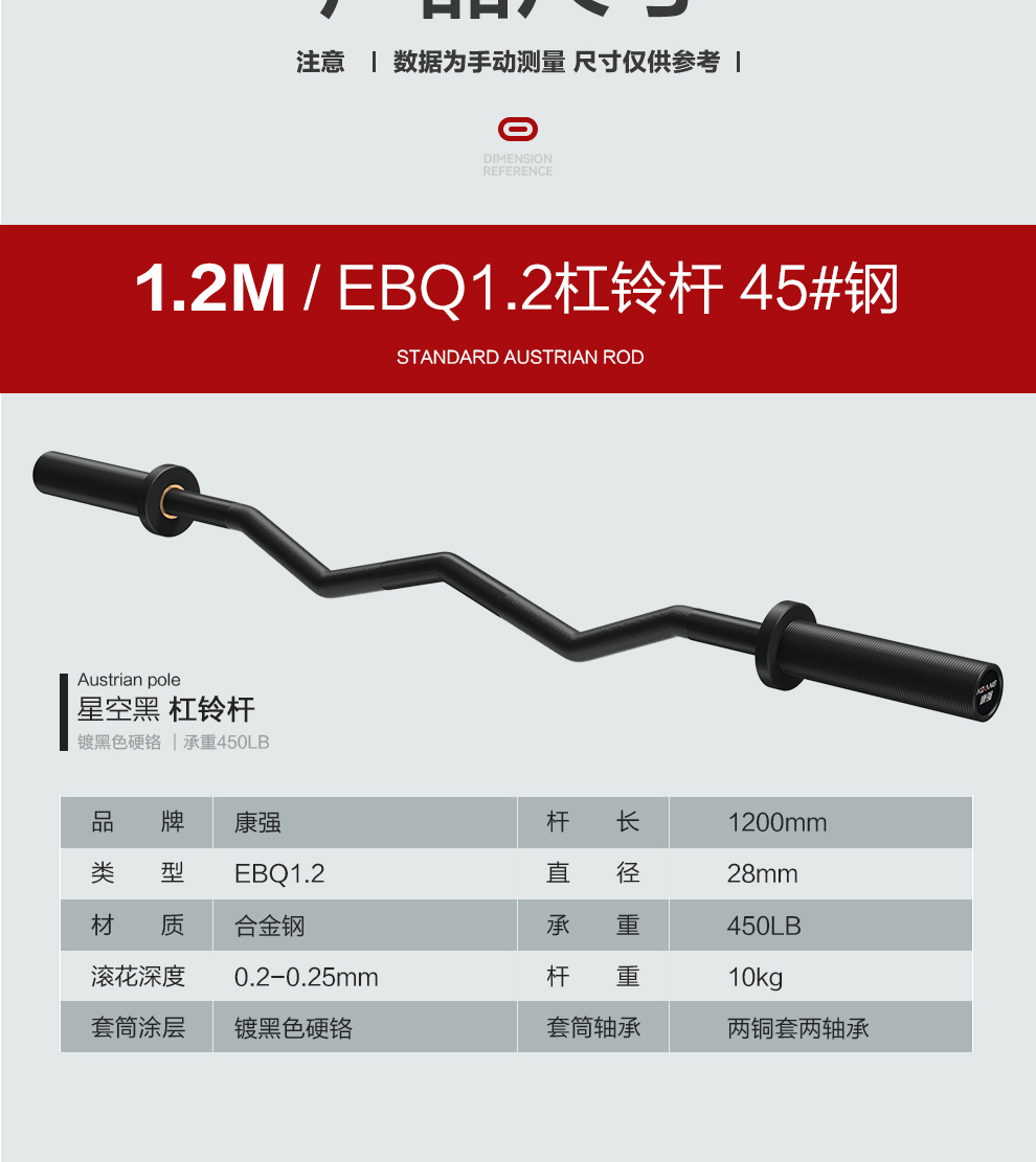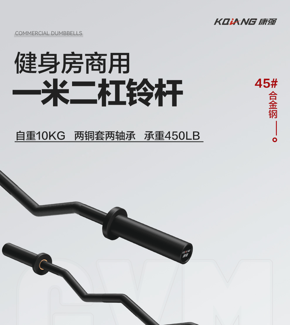 leyu.乐鱼1.2M曲奥杆两铜套轴承重10KG举重杠铃杆卧推健身器材EBQ1.2